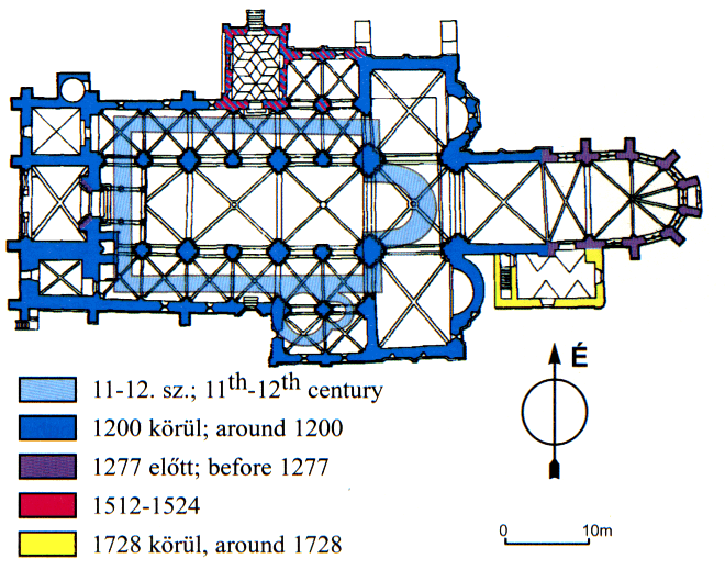- az I. és II. székesegyház periodizált alaprajza