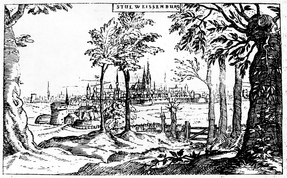 Székesfehérvár látképe a XVI. században (Wilhelm Dillich metszete, 1600 k.)