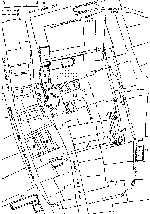 a korai királyi központ rekonstruált alaprajza (Siklósi Gy.)