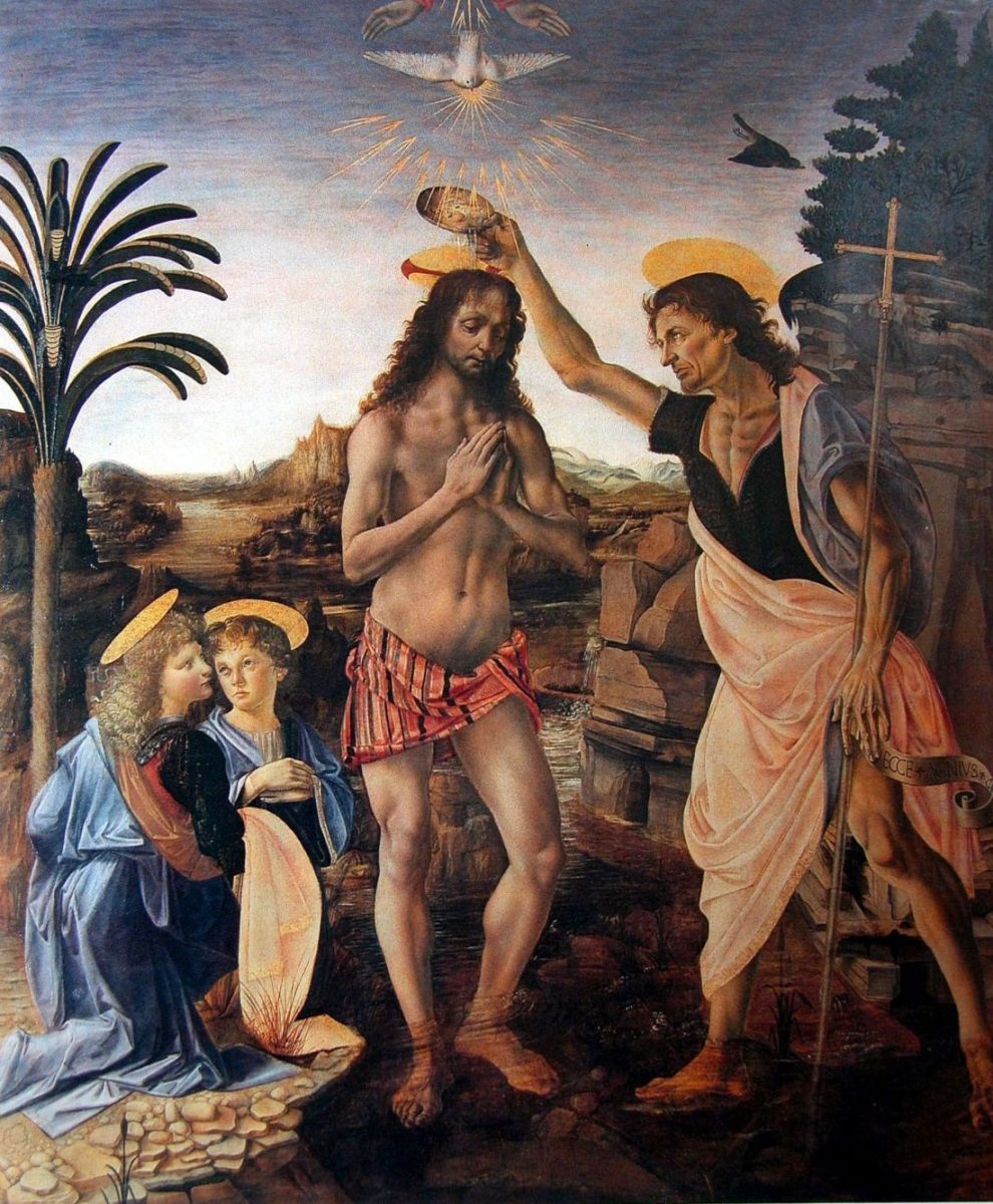 Verrocchio_Leonardo_1472-75 Krisztus megkeresztelese.jpg